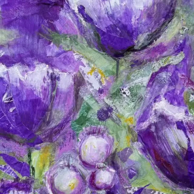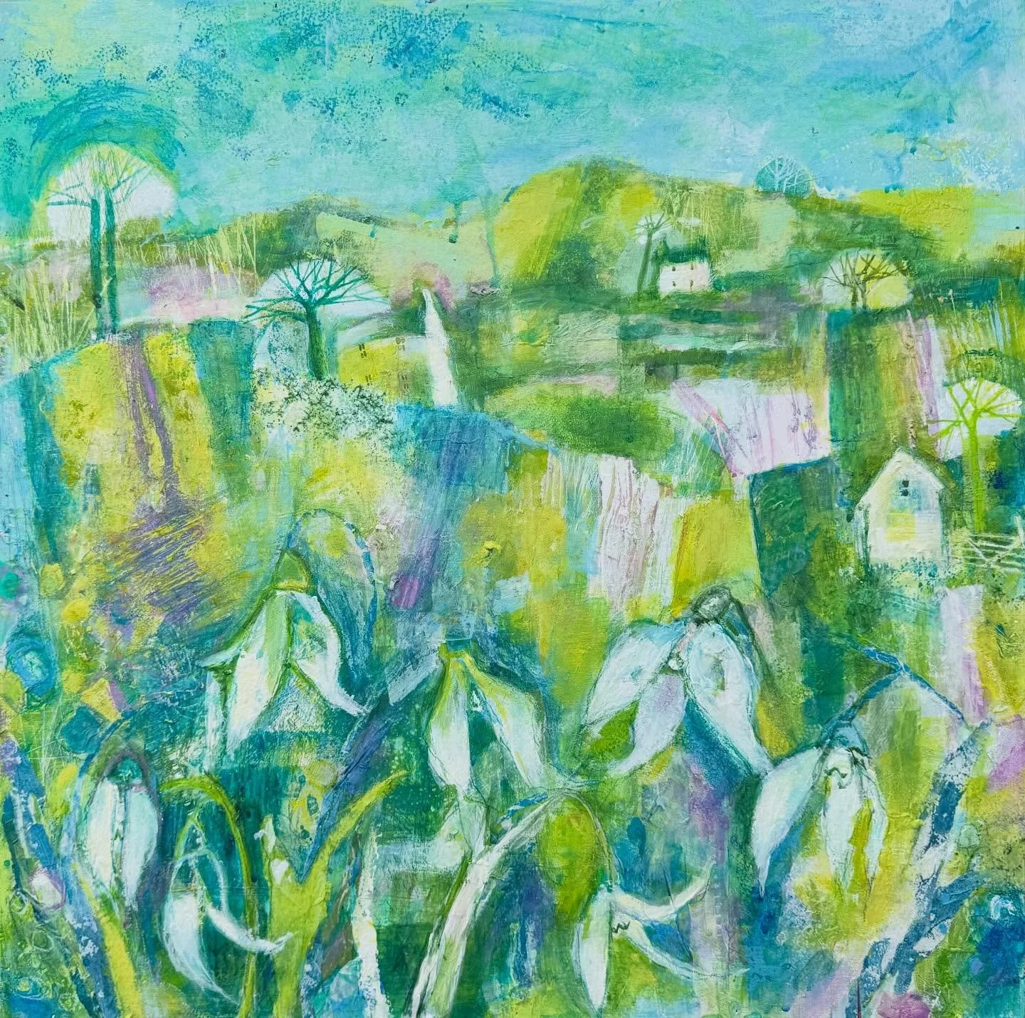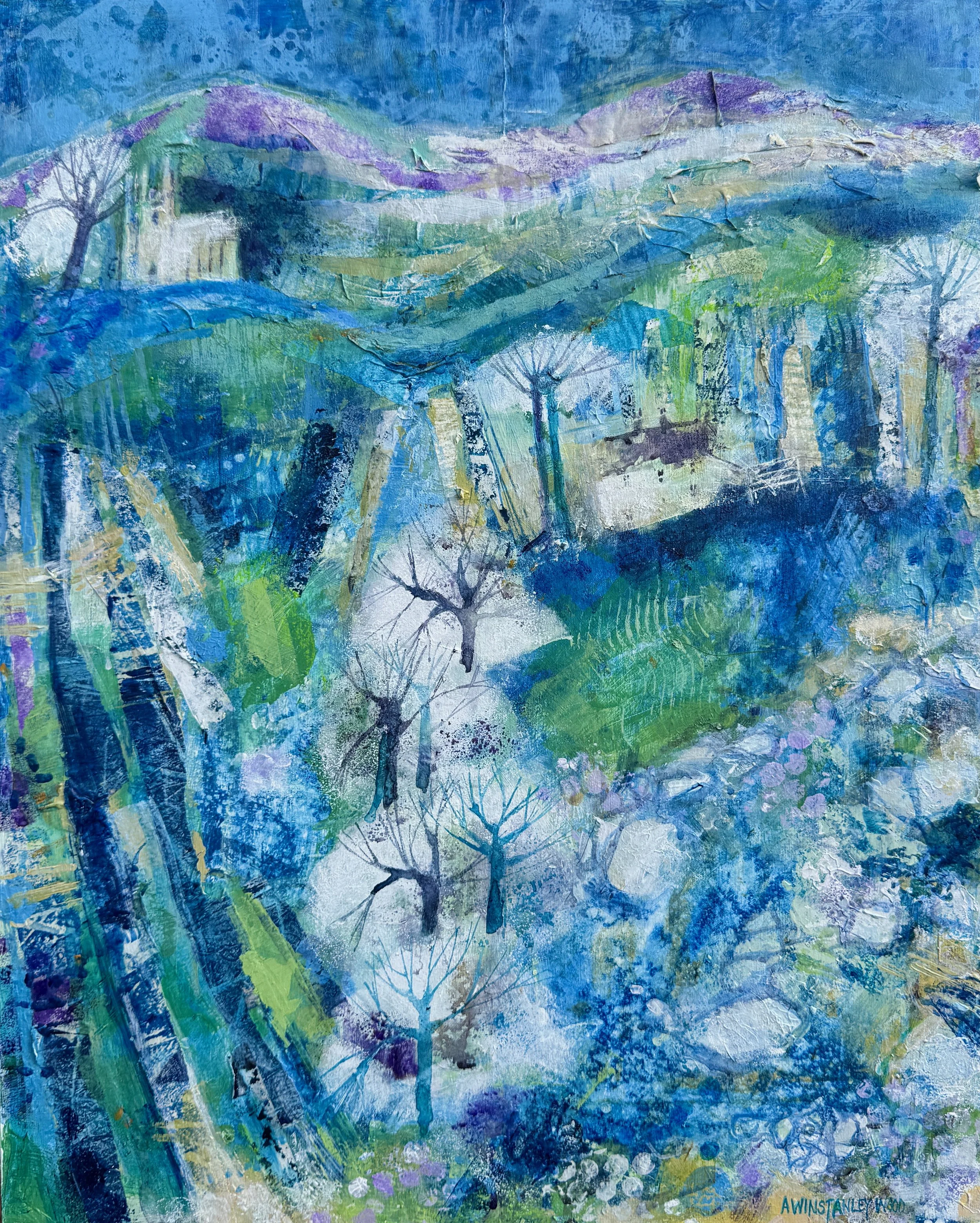 Joyful, semi-abstract landscapes full of gorgeous colours, rich textures and expressive mark making.