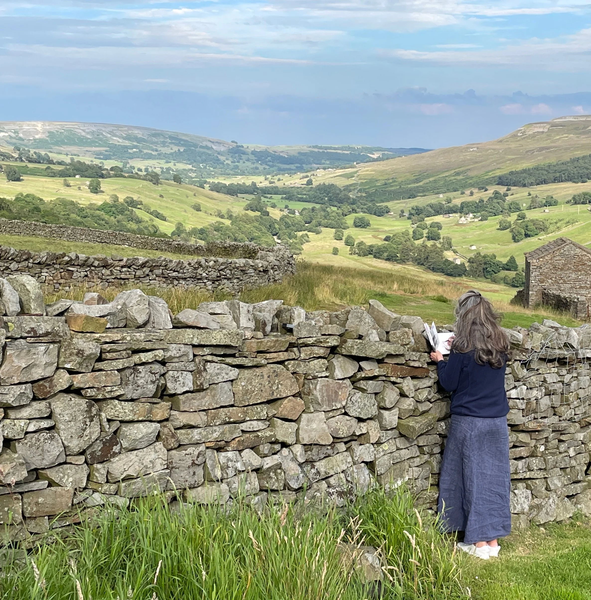 “Anne’s stories flow through her work, the eye travelling around the world she has created, up and down the rolling hills, the dry stone walls and around the bending lanes.”